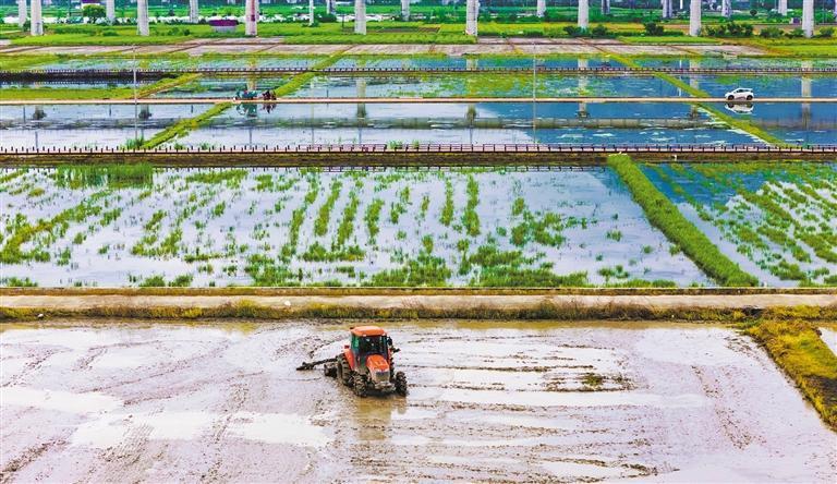 4月6日,村民在浙江永康市石柱镇池宅村的稻虾综合种养基地进行管护作业。该基地利用时间差,实现水稻种植、龙虾养殖、休闲垂钓“一田三收”。胡肖飞 摄(中经视觉)