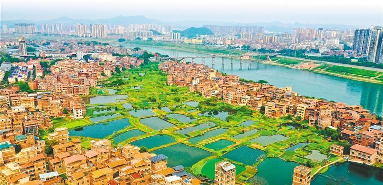 4月12日,广西梧州市长洲岛生态蔬菜基地,湖塘与菜畦交错分布,鱼塘如镜,菜畦如画。黎杰源 摄(中经视觉)