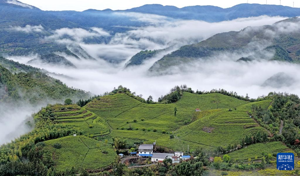 浙江省台州市仙居县横溪镇阳峰山生态茶园(无人机照片)。新华社发(王华斌 摄)