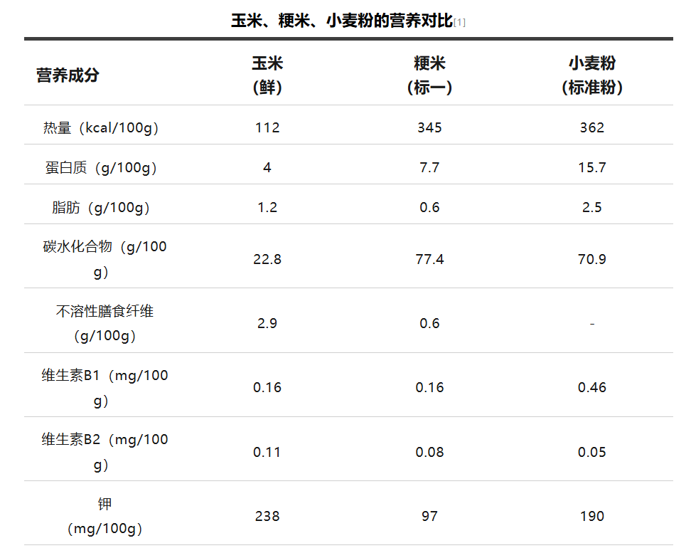 矿物质钾:玉米的钾含量为238mg/100g,虽然比不上荞麦、燕麦、高粱米、藜麦、小米等全谷物,但也比我们常吃的米面优秀,分别是粳米和小麦粉的2.5倍、1.3倍。