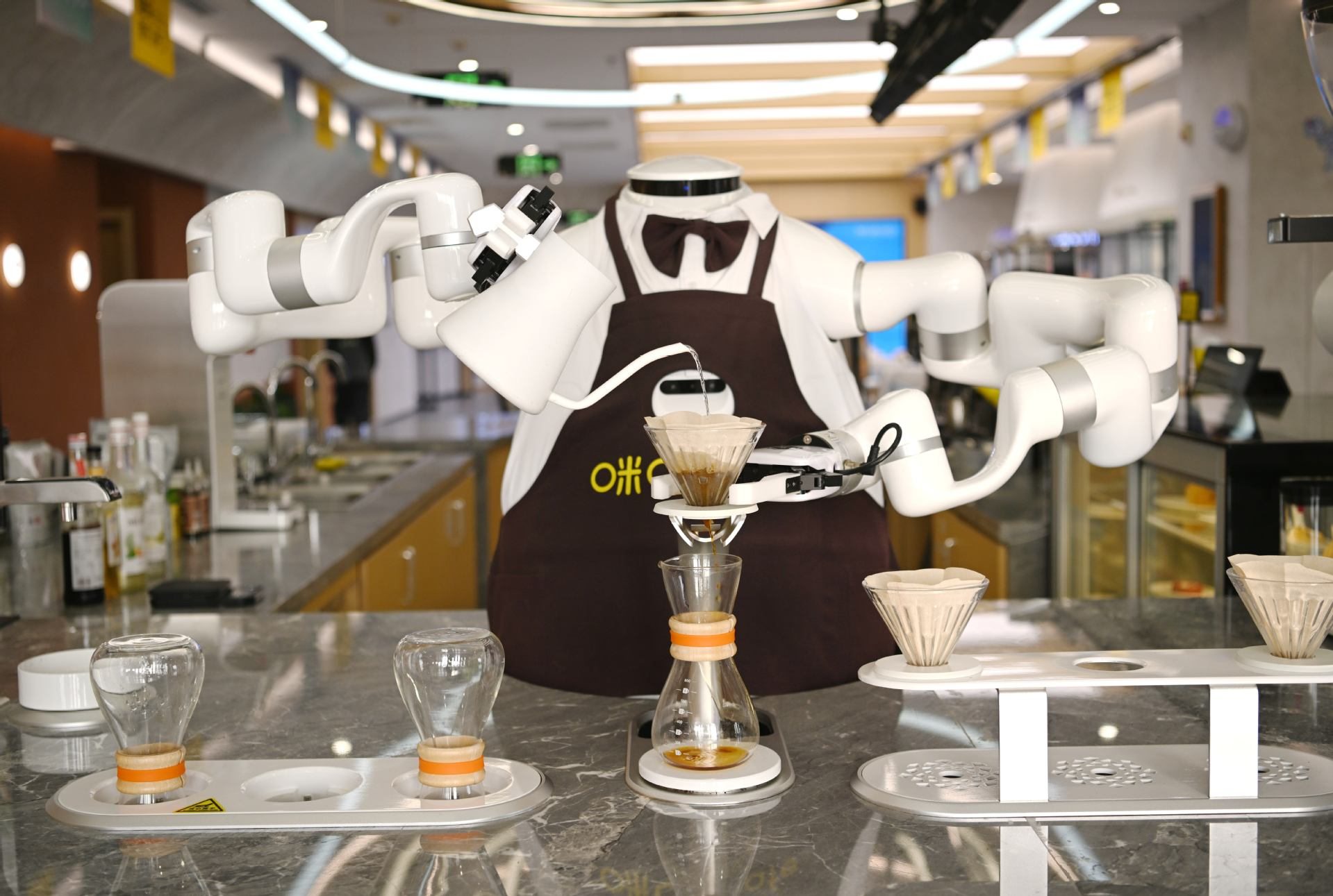 在雄安商务服务中心一家咖啡馆,AI机器人在制作咖啡(2026年3月25日摄)。图片来源:新华社
