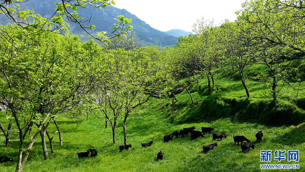 图为黑山羊在林间集中放牧。新华网发