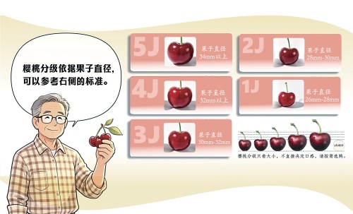 用标准锁定品质。没有标准,消费者就只能“碰运气”。在大连市农业农村局,记者拿到一份详细的大樱桃地方标准,从苗木培育、栽培管理到产品质量分级,全链条都有明确指标。单果重、可溶性固形物、色泽……每一项都可以量化。据介绍,这套标准已推广近30万亩,带动2万种植户年均增收上万元。烟台福山区也正在加紧制定全产业链团体标准。有了标准,好樱桃就是可复制、可预期的常态。