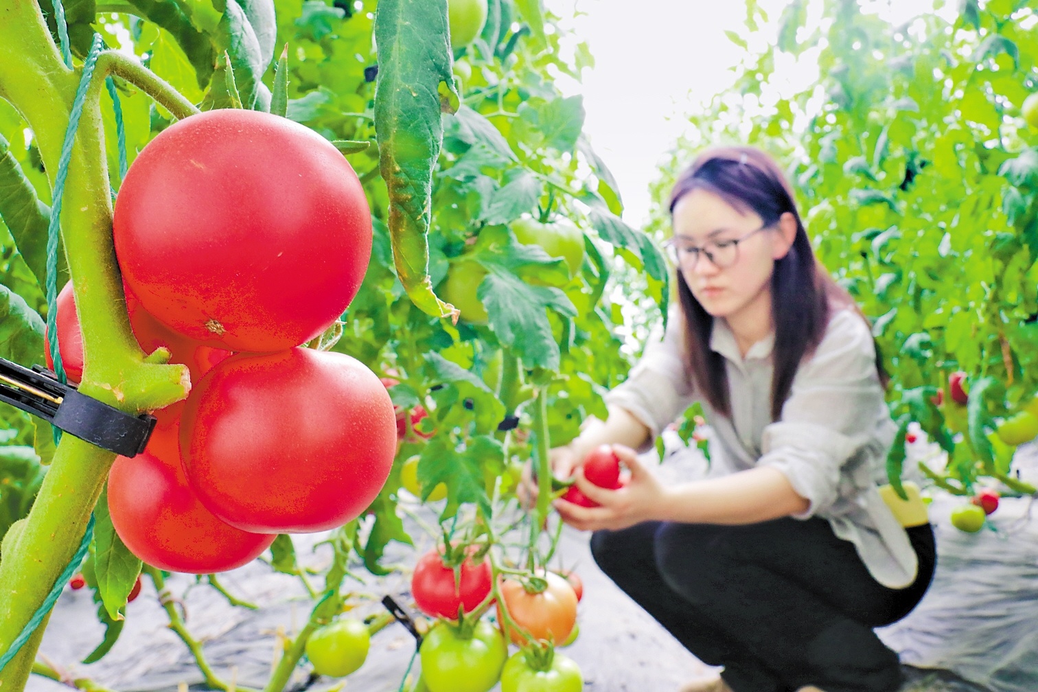 4月25日,泊头市子渔驿站生态家庭农场的工人正在采摘西红柿。 河北日报见习记者 郭庆峰摄