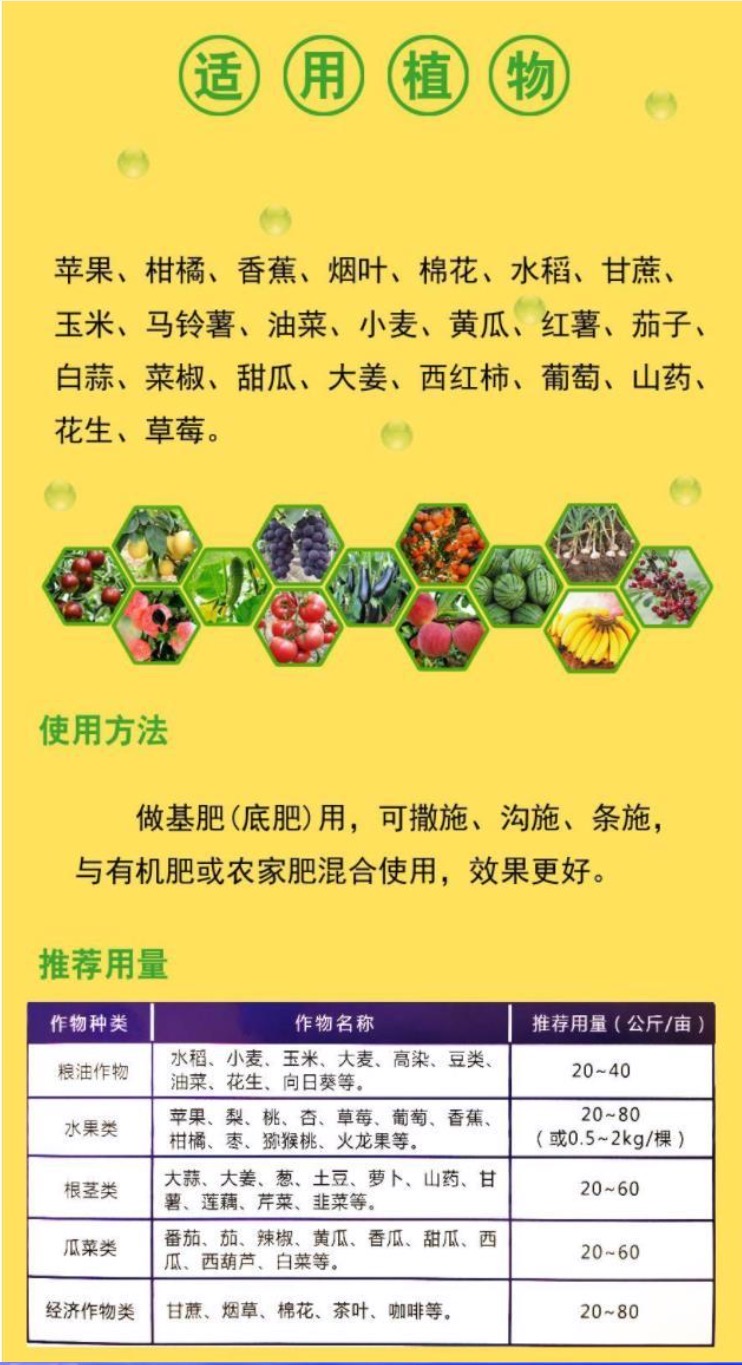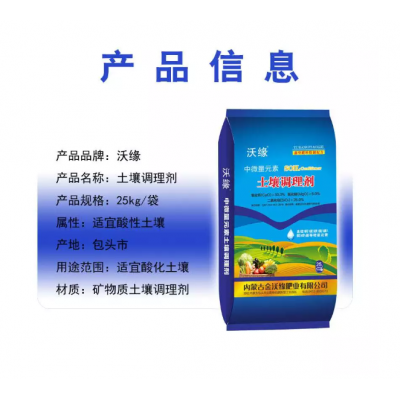 产品规格:25kg/袋 型号:粉剂 用途范围:适宜酸化土壤
